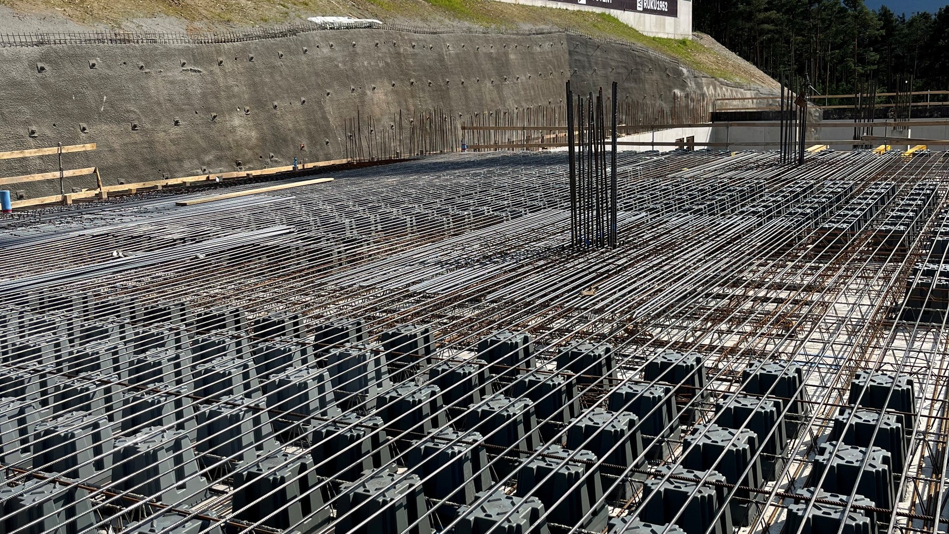 EUT was commissioned to develop and plan a modern commercial and service building with three production floors and two service floors, including the outdoor facilities. The excavation directly adjacent to existing commercial buildings was secured with nail walls up to 25 m high. The building was constructed using prefabricated elements with thermal walls in exposed concrete look and prefabricated ceiling elements with hollow cores.