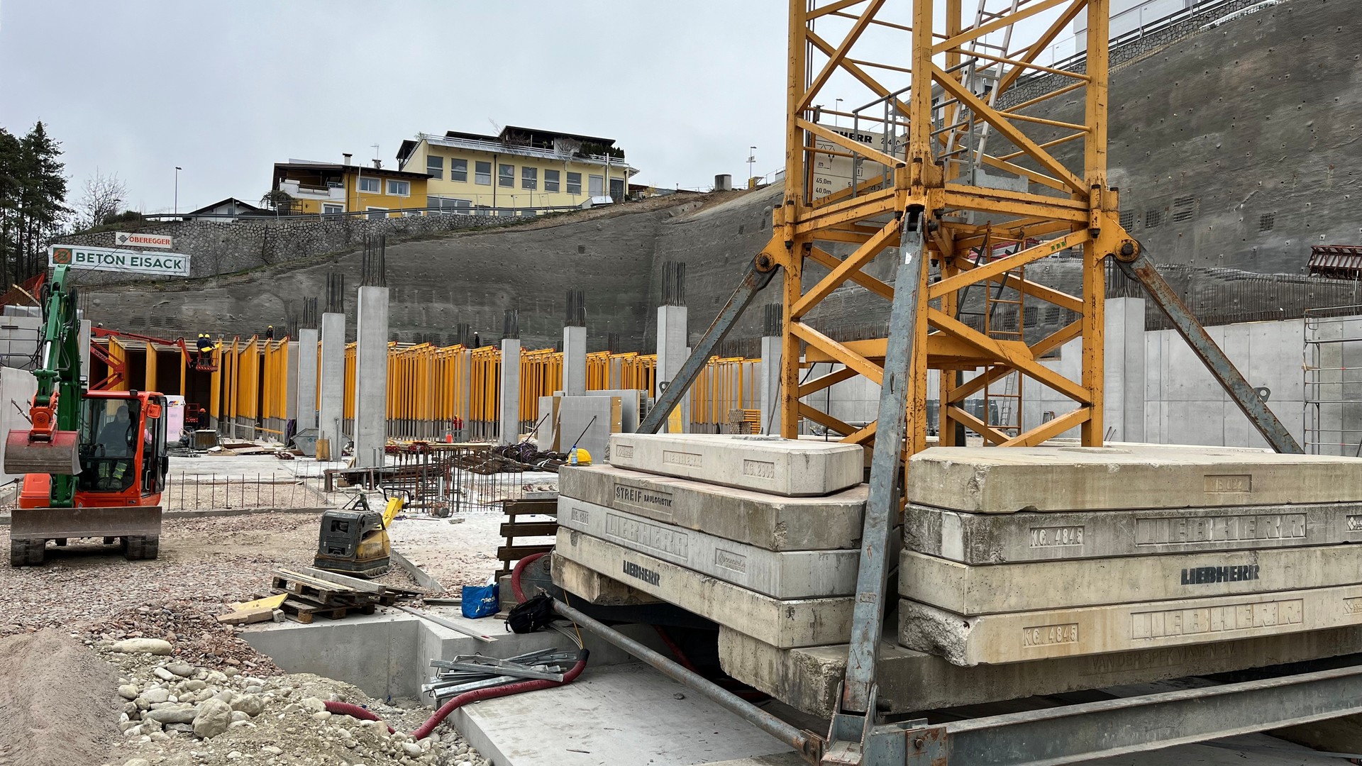 EUT was commissioned to develop and plan a modern commercial and service building with three production floors and two service floors, including the outdoor facilities. The excavation directly adjacent to existing commercial buildings was secured with nail walls up to 25 m high. The building was constructed using prefabricated elements with thermal walls in exposed concrete look and prefabricated ceiling elements with hollow cores.